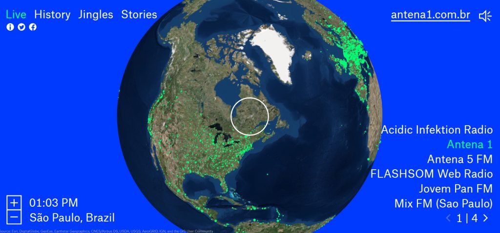 O Radio Garden contém radios online de todo o planeta e, assim que você visitar esse site interessante, perceberá que cada pontinho verde no globo é uma rádio. Se posicionar o cursor sobre um ponto e clicar, você irá escutar o som em tempo real! No canto inferior direito você encontrará outras rádios do país e basta clicar para mudar automaticamente. Agora visite, teste e nos dê sua opinião!