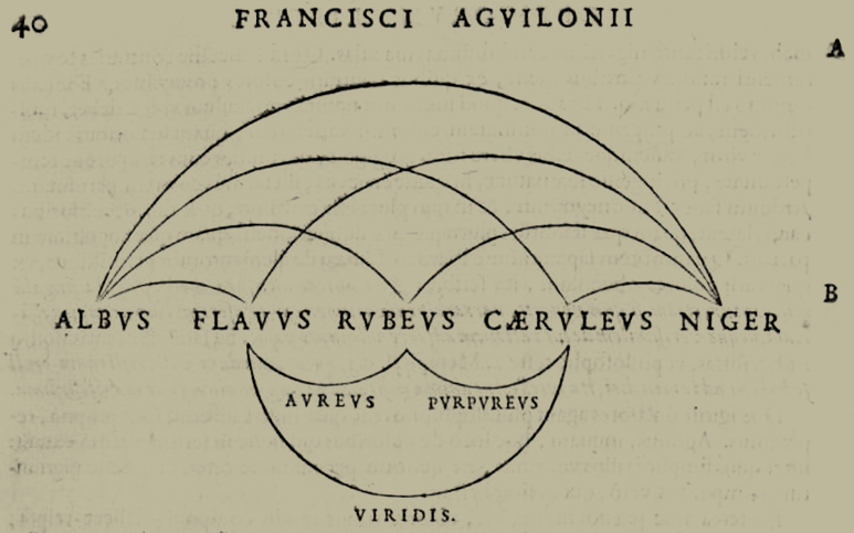 Apesar de sua contribuição, a teoria da cor, as ideias de Aristóteles não foram contestadas até a Renascença quando Franciscus Aguilonius (François d’Aguilon, 1567-1617, jesuíta, filósofo, matemático, físico e arquiteto), desenvolveu um diagrama de cores.