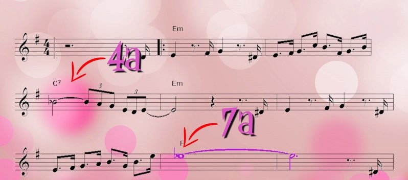 Para quem quiser conferir, este é um fragmento da partitura da música tema da Pantera Cor de Rosa, com a Escala Cigana.