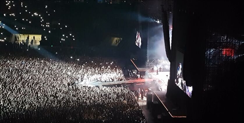 Após algumas horas de espera na fila, na calçada, debaixo do sol quente (o que uma fã apaixonada não faz, né? rs), pude entrar no estádio e aguardar o início do show.