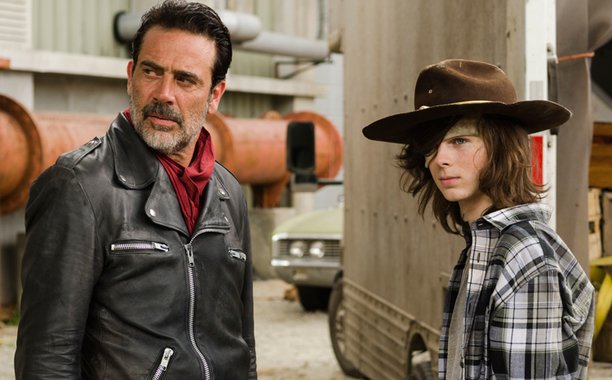 Chandler Riggs é Carl Grimes, Jeffrey Dean Morgan é Negan – Temporada 7, Episodio 7 – Credito: Gene Page/AMC.