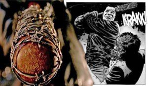 Na série, o grupo denominado de Salvadores aparece e Negan, seu temido Lider, logo em sua primeira aparição nos quadrinhos ”estoura” a cabeça de Glenn usando a temível Lucille (seu taco de beisebol com arame farpado). Vemos, então, a morte de 2 personagens: Glenn, seguindo a cronologia das HQs. A grande surpresa e que não estava nos quadrinhos: Abraham, que morreu nos quadrinhos por causa do Dwight.