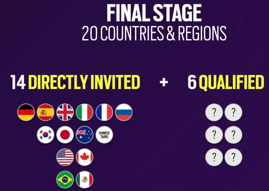 Dos 45 países participantes, 14 deles são convidados e já estarão na fase final do campeonato. O Brasil está entre estes! Nada mais justo, afinal, reconhecidamente, temos as melhores lines e players do mundo! Os outros 31 países participarão de uma fase classificatória, onde avançarão apenas 6: