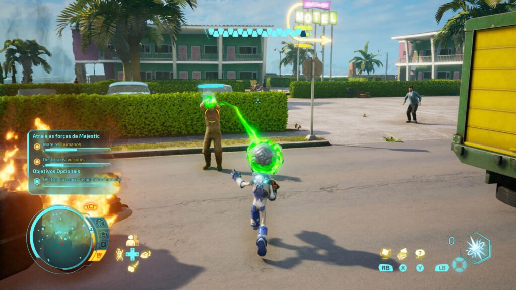 À medida que inimigos mais poderosos são introduzidos, você também começa a desbloquear mais habilidades e atualizações, o que garante que permaneça mais poderoso que os humanos, mas não a ponto de ser dominado. Os inimigos gritam palavras engraçadas quando são queimados ou arremessados e os veículos sempre explodem quando derrotados, abraçando a fantasia que envolve todo esse poder. À medida que você causa mais destruição, sua notoriedade aumenta, levando à respostas maiores e mais poderosas dos humanos. Causar caos e destruição, sem dúvidas, é a parte mais divertida de todo o game.