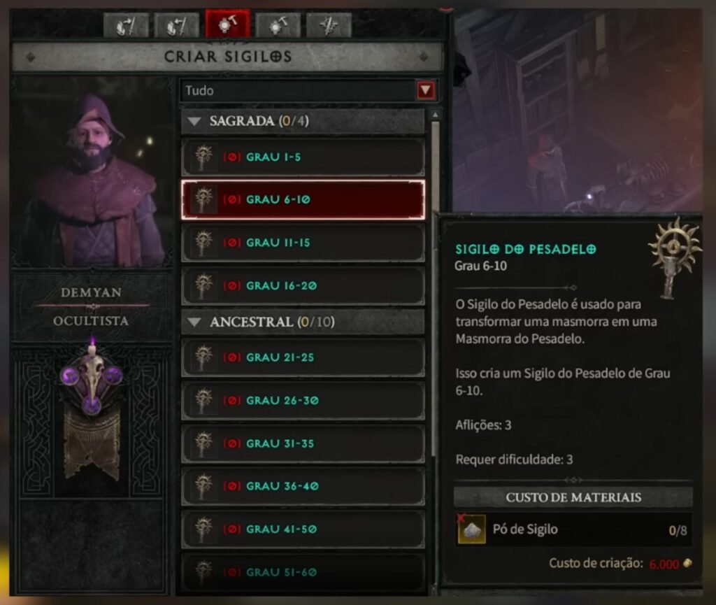 - Sigilos de Masmorras: é uma mecânica que altera significantemente a dificuldade das masmorras, aumentando o número de mobs e conferindo tanto a ele quanto ao boss resistências e poderes que irão complicar (ou até mesmo anular) as estratégias utilizadas pelos jogadores;