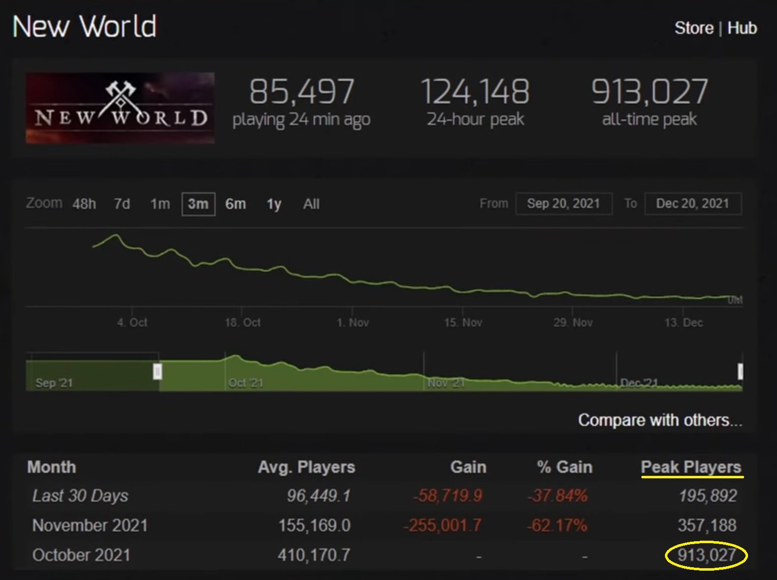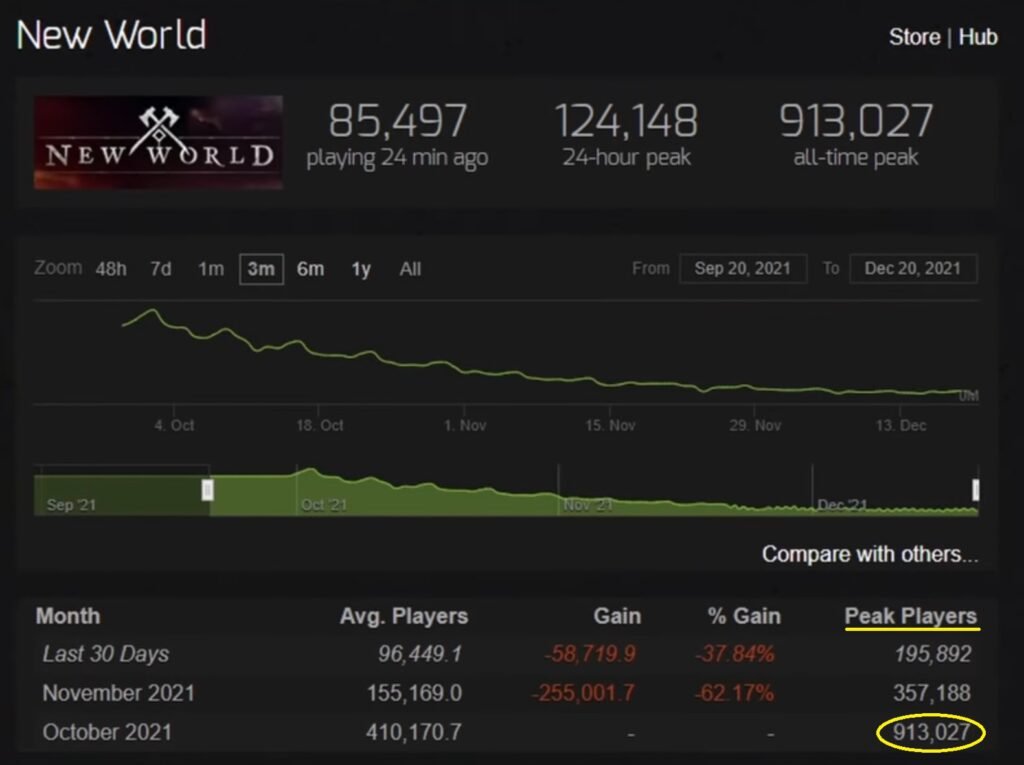 Porém, o que me deixa muito apreensivo é saber se quem deterá os direitos de Lost Ark aqui na América do Sul fará sua condução com sabedoria. Não é mais novidade para ninguém que o título já ganhou até uma data de lançamento oficial: 11 de fevereiro de 2022; sendo publicado por ninguém menos que a Amazon Games, a mesma responsável pela eminente ruína de New World. Os incontáveis bugs, duplicação de itens e gold (que acabaram com a economia do jogo) e conteúdo repetitivo fizeram com que o jogo perdesse cerca de 90% dos seus jogadores em menos de três meses!