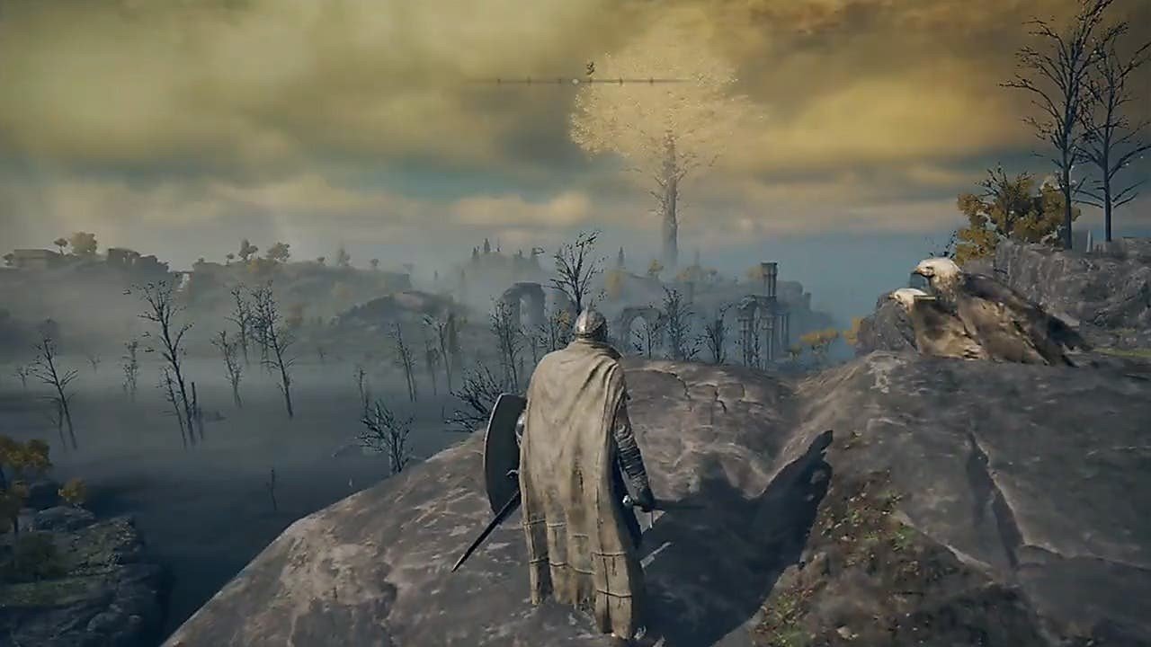 De pé à beira de um penhasco em Liurnia of the Lakes, a área além da arena de Godrick, absorvi o mundo que estava à minha frente: a enorme Erdtree lançando brilhantes raios dourados de luz sobre a terra que existe em sua sombra; os picos pontiagudos de uma montanha distante que parecem garras rasgando o céu; um castelo erguendo-se orgulhosamente em meio a ruínas; uma floresta coberta por uma névoa sinistra. Foi tudo esmagador, e nenhuma das dificuldades que experimentei em Demon’s Souls Remake, Dark Souls, Bloodborne ou em Sekiro: Shadows Die Twice chegou perto de me fazer sentir tão pequeno, tão inútil. Ao mesmo tempo, fiquei emocionado as batalhas aparentemente intransponíveis que esperavam.