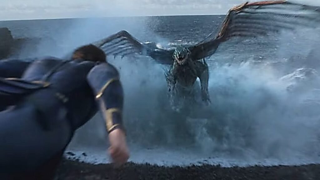 A primeira coisa que você notará ao assistir “Eternos” é que absolutamente não se parece com um filme da Marvel. A diretora Chloe Zhao estava comprometida com o uso de locações e cenários práticos, o que significa que a estranha dependência do VFX para tudo, desde adereços menores a fantasias e salas inteiras, é quase completamente evitada. Claro, há um punhado de cenas com os ragdolls CGI necessários sendo jogados ao redor, disparando rajadas de energia enquanto lutava contra monstros, mas pelo menos o resto do set é real. O resultado final é um dos filmes mais visualmente impressionantes, e que com certeza resistirá ao teste do tempo melhor do que qualquer um de seus antecessores. E é a impressão que tenho!