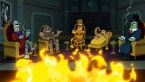 Como não poderia deixar de existir, os robôs de Futurama, movidos a etanol. Aqui uma alusão ao filme O Poderoso Chefão.