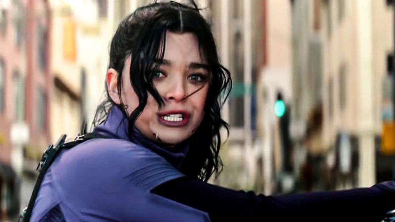 Enquanto isso, temos um novo personagem Kate Bishop (Hailee Steinfeld), que aprendemos que passou sua vida idolatrando o Gavião Arqueiro e treinando um pouco de tudo, desde arco e flecha a esgrima e ginástica. Ela é uma universitária rica com um problema que, graças a alguns eventos complicados com o novo namorado de sua mãe (e seu futuro padrasto), acaba tendo alguns problemas.