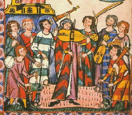 - Música Medieval: período marcado pelo canto gregoriano, através do monge Guido d´Arezzo (995 – 1050), cantado nas igrejas. Além dele, temos várias danças e canções, como: a viela (da família do violino), o alaúde, flautas doces, gaitas de fole, trompete medieval e instrumentos de percussão.