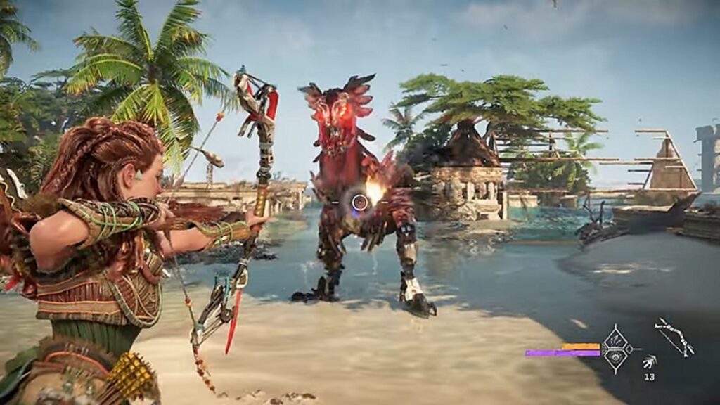 De muitas maneiras, a “pegada” do novo game é praticamente a mesma de seu antecessor, mas segue o espírito de sequência comum de “mais e maior”, e muitos dos sistemas foram aprimorados e expandidos. Os games Horizon incluem escaladas e quebra-cabeças ambientais como aqueles que você veria em outros, mas muito mais do mundo de Forbidden West é escalável do que em Zero Dawn, permitindo que você alcance o topo de montanhas ou ruínas. A liberdade ainda melhora bastante a travessia, no entanto, assim como uma garra motorizada que você pode usar para alcançar pontos especialmente marcados, um planador que permite descer desses lugares altos rapidamente e a capacidade de nadar e explorar ambientes submersos.
