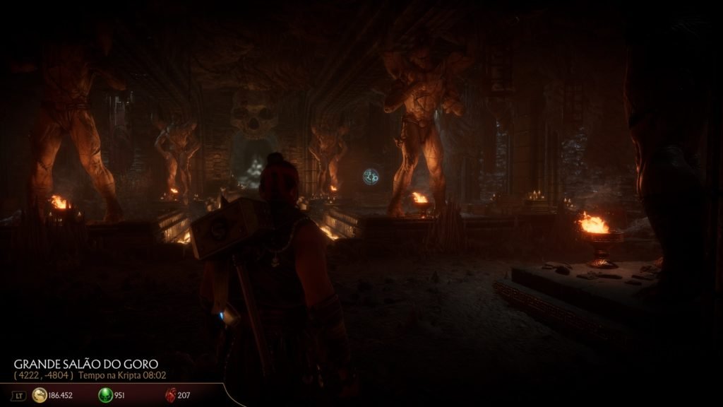 – Krypta: De longe, o modo que mais detesto! Mas kalma, meu mortal nerd… não é por ser ruim. É porque, simplesmente odeio e não me adapto a jogos em 3ª pessoa. E MK11 resolveu inovar justo aqui. Ao kontrário das outras krytas, onde apenas a kâmera se movimentava e você ia kolhendo os itens pelo mapa, agora você controla um personagem, no estilo Dark Souls, pela GIGANTESCA ilha do Shang Tsung, idêntica àquela do filme de 1995. Reparou no “gigantesca”?! É enorme, kom muitos locais secretos, cheios de puzzles, necessidade de encontrar outros itens para avançar às outras áreas, itens vendidos por quatro tipos diferentes de moeda, entre outras chatices. Para quem gosta de jogo de aventura, é um prato cheio! Eu, que sou limitado e chato nesse sentido, komprei um jogo de luta para lutar, e não para passar HORAS e HORAS procurando coisas à la Lara Croft. Enfim… desabafo a parte, acredito que a maioria gostou e aprovou esse modo.