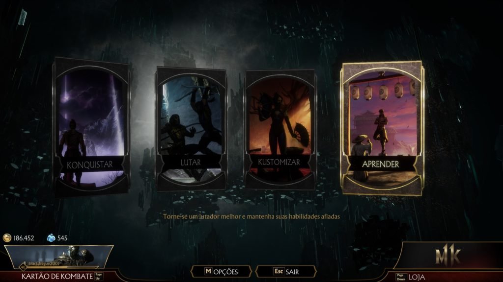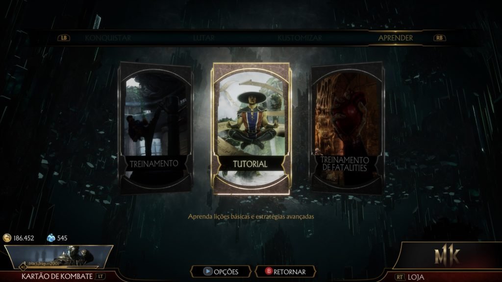 Menu Aprender: Neste menu, você pode treinar e desenvolver suas habilidades no jogo. Os modos são os seguintes: