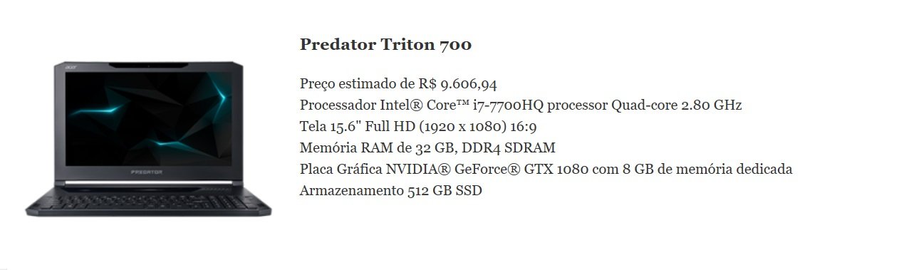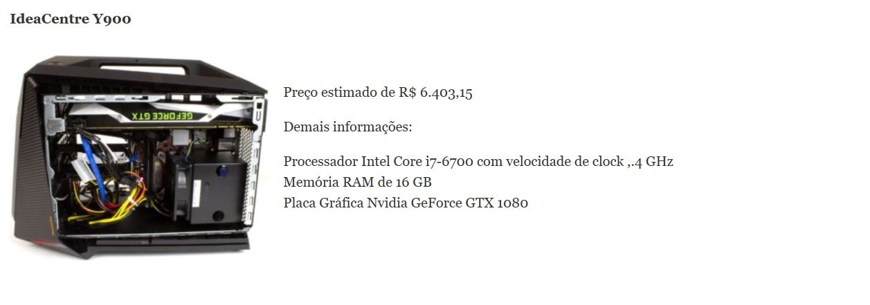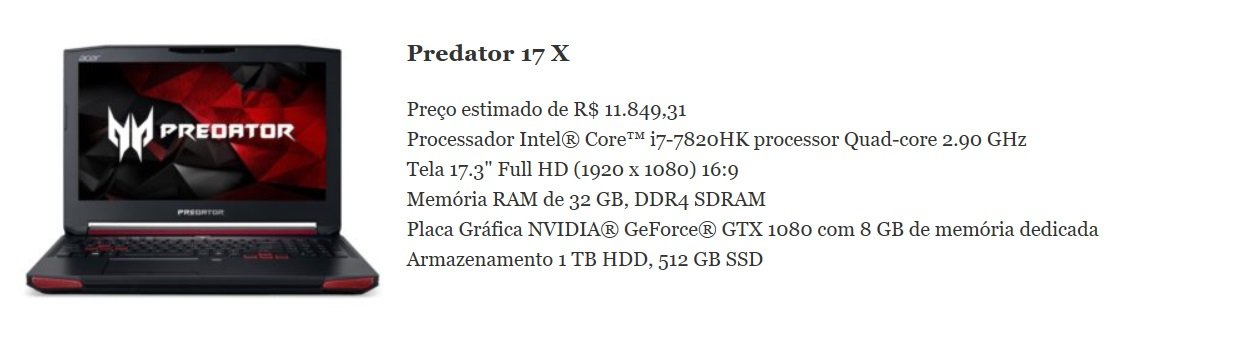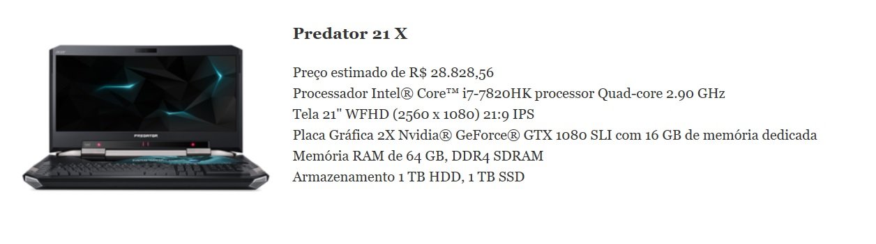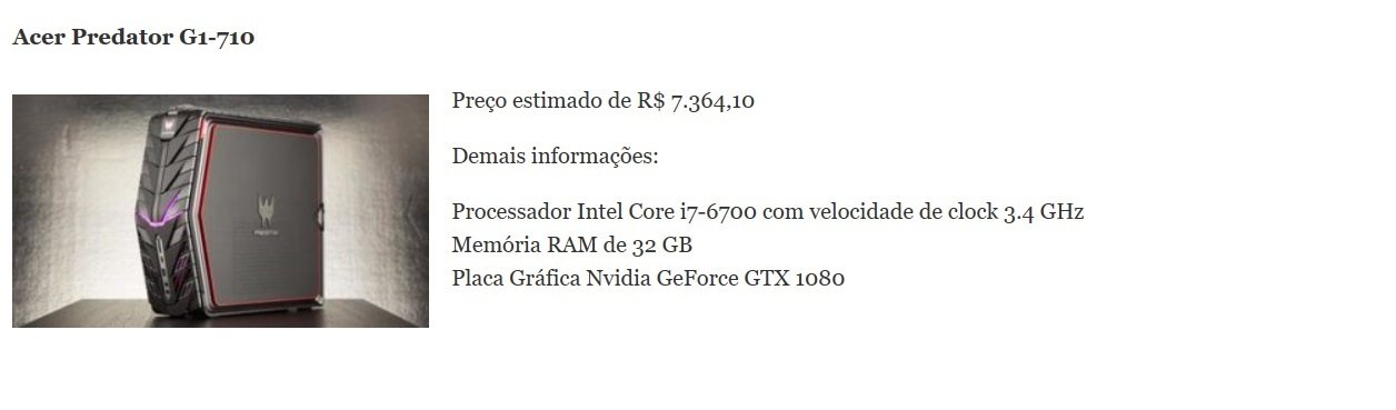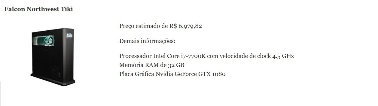 Percebemos que tais “máquinas” são poderosas e contém componentes de ponta no mercado atual. Mais notório do que isso são os valores comerciais estimados de cada desktop ou notebook apresentado, alguns dos quais o valor é tão alto que equivale a um carro popular quase zero. São equipamentos longe da realidade da maioria dos brasileiros e mesmo de grande parte do mundo e também de toda nossa equipe.