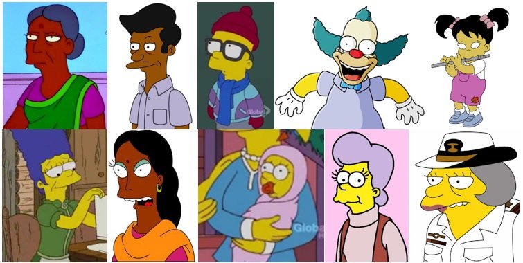 Da esquerda para a direita: Judy Nahasapeemapetilon, Kavy Nahasapeemapetilon, Kirk Simpson, Krusty, Ling Bouvier, Mabel Simpson, Manjula Nahasapeemapetilon, Margaret Samson, Mona Simpson e Mrs. Gumble.