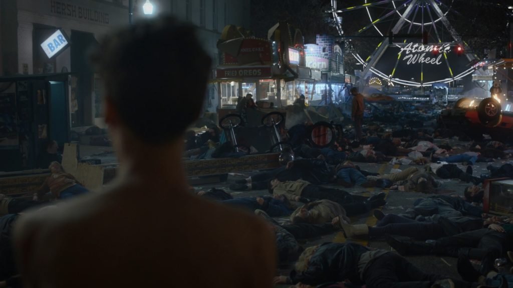 E então, meu conspirador nerd? Consegue sentir o cheiro da tensão que a série exala? Em pleno 2019, tem-se policiais e detetives trabalhando mascarados a fim de não serem identificados, embates raciais escancarados, uso limitado e controlado de tecnologia por medo de outra catástrofe como a que, supostamente, o Doutor Manhattan realizou em 1985, cidadãos aderindo à prática criminosa do vigilantismo, ou seja, ato de pôr uma fantasia e bancar o herói pela cidade, entre outras maluquices, tal qual a esporádica chuva de lulinhas alienígenas, explicada apenas no final da temporada.