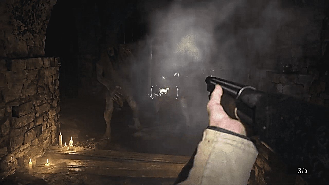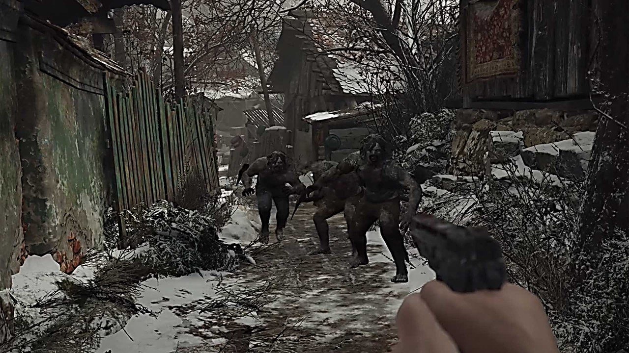 Dessa vez, Ethan acorda algum tempo depois de um acidente de carro. Os dois caras aleatórios das forças especiais que estavam transportando ele e Rose estão mortos. Ethan vagueia pela floresta nevada em busca de seu filho desaparecido, até que alcança uma aldeia em ruínas, aparentemente vazia. Em pouco tempo, descobre que está sob o cerco do que parecem ser lobisomens. É tudo muito remanescente do início de Resident Evil 4, que alterou a fórmula Resident Evil ao deixá-lo cair em uma vila invadida por inimigos que agiam como humanos em vez de zumbis desajeitados e sem mente. Os assi chamados licanos empunham armas e atiram flechas em você e, para evitar ser cercado, precisará correr para as casas e bloquear as portas com móveis para retardar seus avanços. O primeiro grande desafio em Village é sobreviver a um ataque dessas criaturas enquanto você tenta freneticamente criar barricadas, encontrar armas e correr antes de ficar completamente sem vida e sem recursos de qualquer tipo.