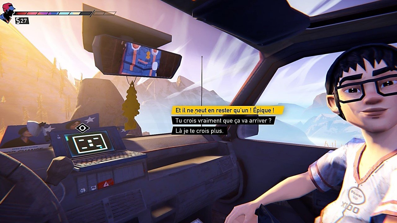 Cada corrida é segmentada em vinhetas curtas que ocorrem em vários locais, como estacionamentos de trailers, paradas de caminhões ou dentro de um carro em que você decidiu pegar carona. passar, permitindo que você se concentre nas conversas com os personagens. Você seleciona respostas em conversas usando a visão em primeira pessoa do game, que nem sempre é a maneira mais elegante de escolher a opção desejada quando um personagem ao qual você está respondendo está se movendo um pouco de forma irregular. A escolha do tom de sua resposta, se é de apoio às ações violentas da resistência ou mais alinhada com a necessidade de as pessoas votarem na oposição, por exemplo, influencia diretamente no tempo que essas vinhetas podem durar dependendo quais personagens estão presentes e, em alguns casos extremos, podem encerrar uma corrida prematuramente quando você colide com alguém perigoso. Isso significa que escolher suas palavras precisa ser mais medido do que apenas escolher o que se alinha com o papel que você está escolhendo desempenhar na história geral, para que cada interação tenha uma sensação adequada de tensão.
