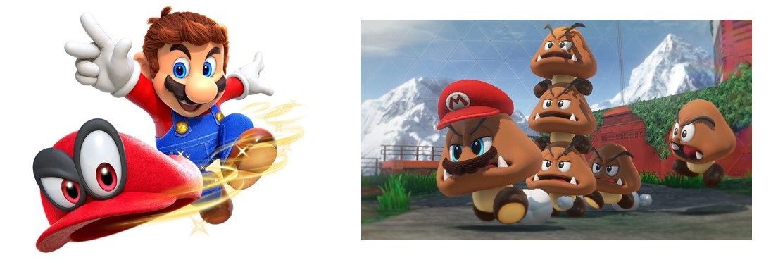 Você é guiado através de tudo isso por Cappy, o novo companheiro de Mario! É um chapéu que pode possuir os corpos de outras criaturas e colocá-lo literalmente no banco do motorista. Este chapeuzinho simpático está satisfeito descansando em cima da cabeça de Mario, mas quando você avistar outro personagem sem um chapéu, amigo ou inimigo, você pode simplesmente jogá-lo em sua cabeça para assumir seu corpo e usar suas habilidades únicas. A seleção de 52 coisas capturáveis, abrange grunhidos Goomba e as balas Bullet Bills para hits inesperados como uma árvore de Natal ou uma fatia gigante de carne neon. Se atente para às estátuas inspiradas na Ilha de Páscoa que usam tons rosa para revelar plataformas escondidas.
