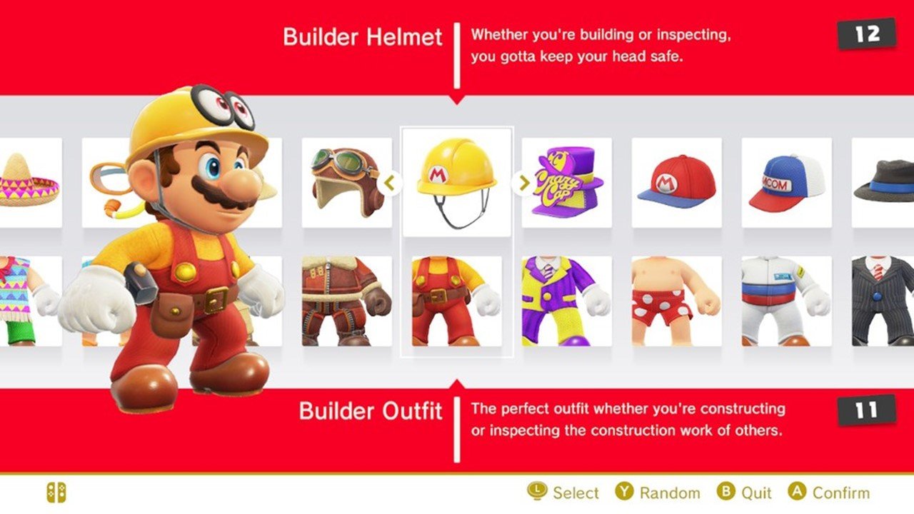 Embora você não esteja acostumado(a) a usar roupas diferentes para mudar o comportamento de Mario (a menos que você conte os corpos possuídos como roupas), você pode se vestir para se divertir misturando e combinando uma grande seleção de chapéus e ternos do passado de Mario.