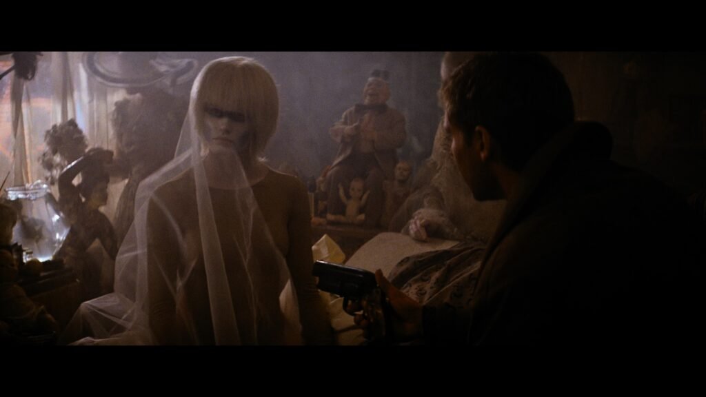 Por mais uma vez, Deckard é espancado! Pri é extremamente ágil e faz do humano “gato e sapato”. Porém, por ser dotada de um exibicionismo impertinente, a androide resolve finalizar o adversário de forma acrobaticamente épica, dando chance para que ele pegasse sua arma e a eliminasse com um tiro certeiro.