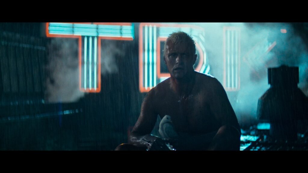 Todavia, é justamente nessa parte, quando estamos aflitos para saber como o protagonista irá reverter a situação e vencer a disputa, somos surpreendidos com a atitude de Roy. O androide, cuja inteligência artificial evoluíra ao ponto de fazê-lo valer-se da filosofia para realizar planos e tomar suas decisões, ao perceber que seu ciclo de vida chegara ao fim, salva Deckard, pois ele cairia do topo de um prédio. De baixo de chuva, senta-se no chão segurando uma pomba, e manda, simplesmente, essa ideia aqui antes de morrer: