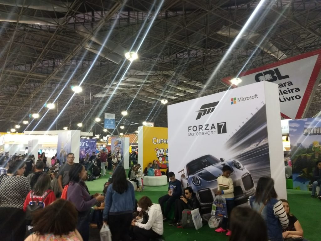 A Microsoft estava presente, com vários estandes demonstrando alguns produtos na área de educação e claro, uma área para descanso que achei bem interessante. Nessa área, os encostos dos bancos eram murais com alguns dos jogos disponíveis, como Cuphead, Super Luck’s Tale, Forza Motorsport, Minecraft, o futuro Ori and the Will of the Wisps e alguns outros, sendo a maioria, exclusivos do console Xbox One, da gigante de Redmond. Os estandes estavam simplesmente fantásticos, mas infelizmente, não consegui entrar.