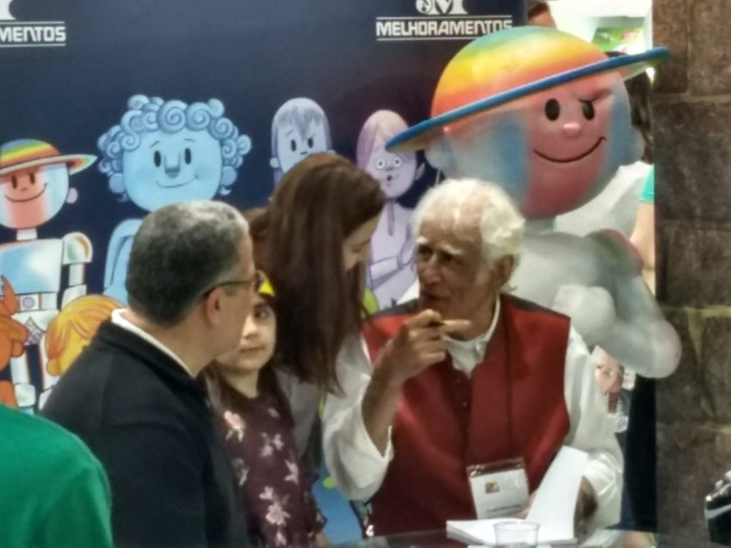 Fiquei muito feliz ao passar pelo estande da Editora Melhoramentos e pude ver, mesmo que de longe (por isso a fotografia não ficou muito boa), o escritor Ziraldo. Nunca havia tido essa oportunidade. Fiquei feliz, porque pelo menos a minha visita ao evento não foi de toda perdida.