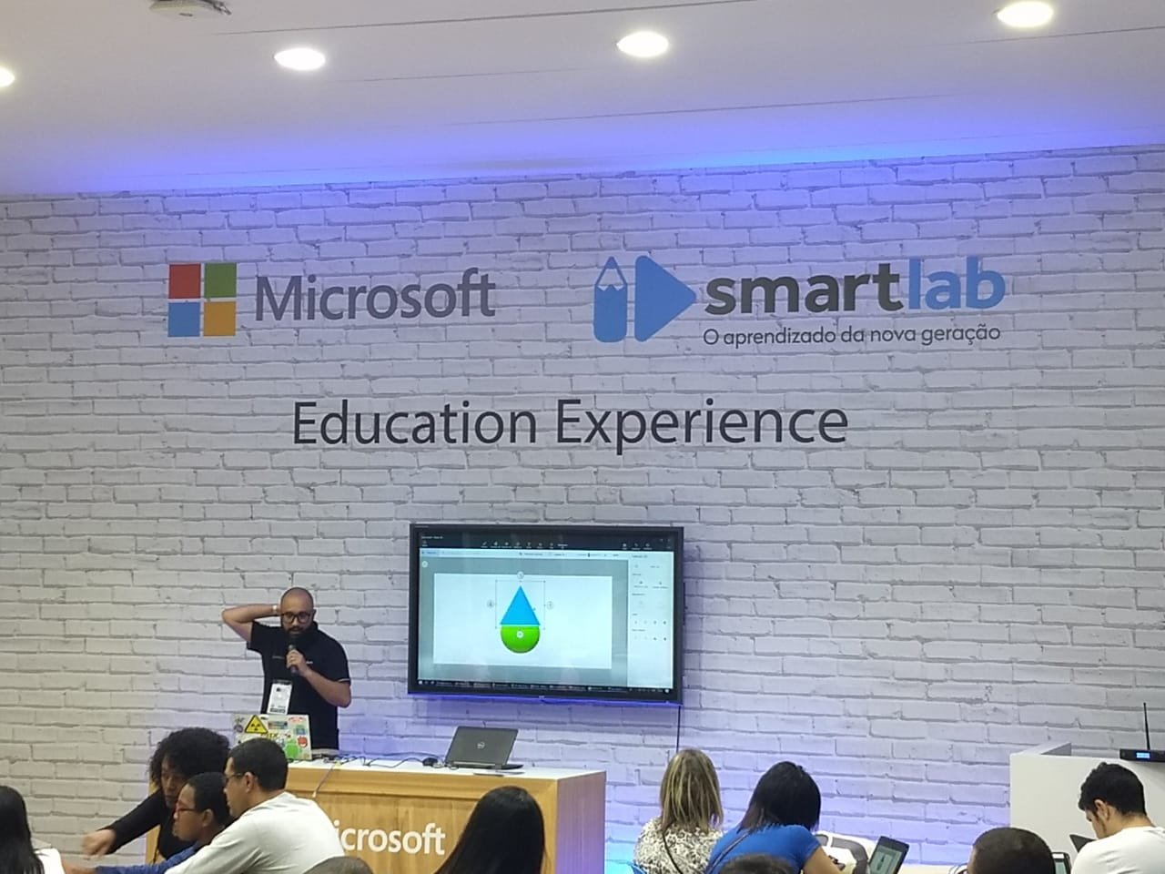Um terceiro estande era sobre o MIcrosft SmartLab Education Experience, que propõem um espaço onde o aluno aprende de forma mais envolvente em sala de aula, por meio do uso de tecnologia e com incentivo ao aprendizado colaborativo. O objetivo desse ambiente é desenhar uma escola do futuro, com aprendizado interativo, tentando despertar no aluno o desejo de permanecer na escola por mais tempo.