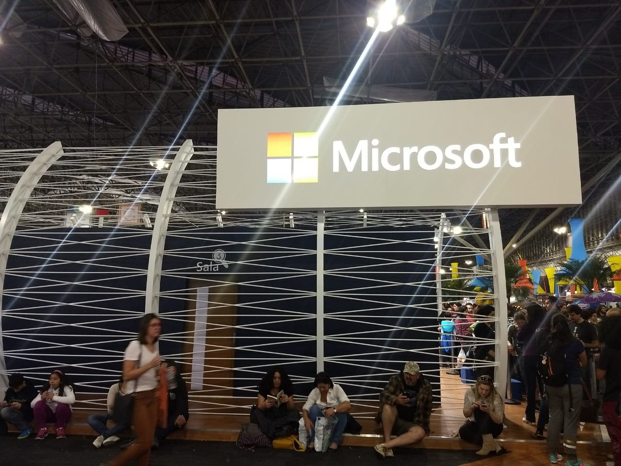 A Microsoft estava presente, com vários estandes demonstrando alguns produtos na área de educação e claro, uma área para descanso que achei bem interessante. Nessa área, os encostos dos bancos eram murais com alguns dos jogos disponíveis, como Cuphead, Super Luck’s Tale, Forza Motorsport, Minecraft, o futuro Ori and the Will of the Wisps e alguns outros, sendo a maioria, exclusivos do console Xbox One, da gigante de Redmond. Os estandes estavam simplesmente fantásticos, mas infelizmente, não consegui entrar.